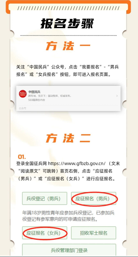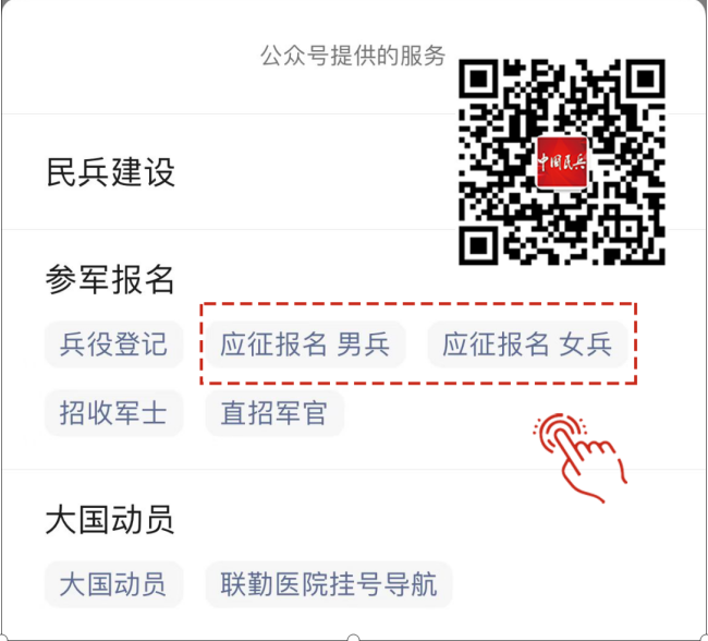 手机关注“中国民兵”微信公众号 识别二维码,进入全国征兵网报名 ↓ ↓