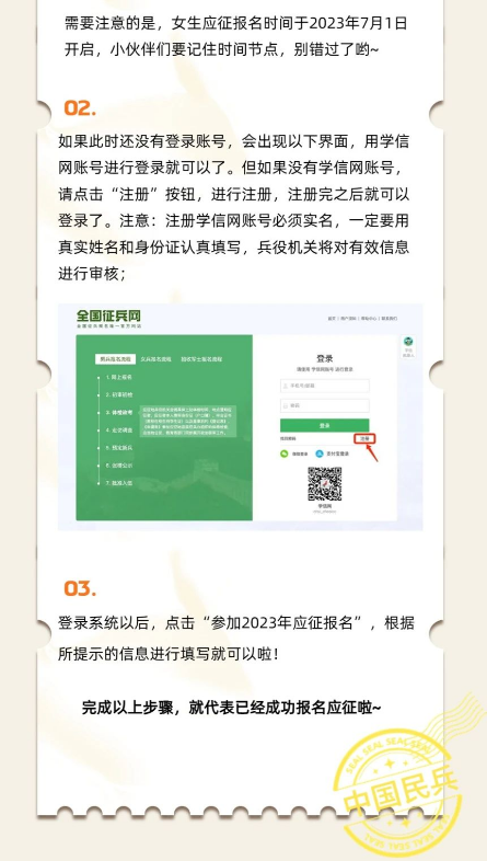 下半年女青年应征报名通道于2023年7月1日开启。