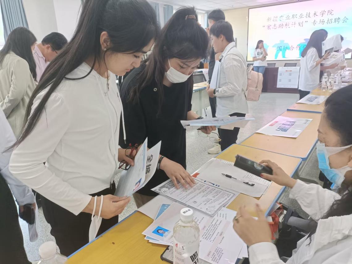 为抢抓就业机会,拓展学生就业实习岗位,帮助学生找到满意的工作岗位,实现高质量对口就业,5月31日下午,国际合作分院特邀请新疆30余家企业单位来校,开展了主题为“宏志助航计划”的校园专场招聘会,分院2021级商务管理专业、关务与外贸服务专业、商务英语专业300多名学生参加了此次招聘会。