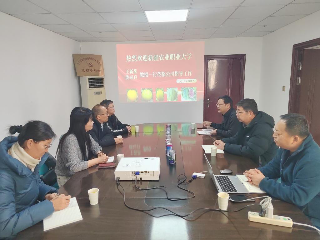 2026年3月5日,学校科学技术处处长王新燕、生态园林工程学院院长许建、设施农业研究所所长陈远良、设施农业研究所何梅副教授一行,前往新疆西域种业股份有限公司进行调研,双方围绕科研合作、研究中心建设、人才培养、技术攻关等事宜展开深入探讨,并初步达成多项合作意向。