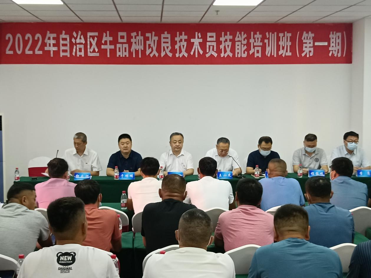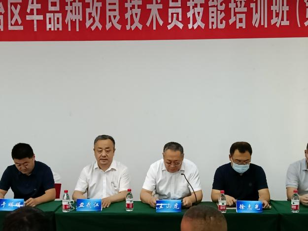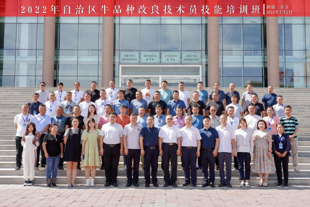 2022年7月2日,自治区牛品种改良技术员技能培训在新疆农业职业技术学院正式开班,新疆农业职业技术学院党委委员、副院长王山虎、自治区西门塔尔牛产业技术体系办公室主任程黎明、自治区畜牧兽医局畜牧处李亮、新疆农业职业技术学院院长助理、动物科技分院党总支书记丑武江及来自伊犁地区、阿勒泰地区、塔城地区、昌吉地区等四个地州一线牛品种改良技术员50人参加开班典礼。