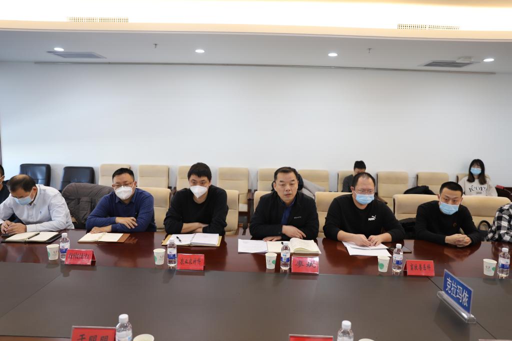 为深入贯彻落实党的二十大精神,贯彻落实党中央、自治区关于深化产教融合改革部署,促进教育链、人才链与产业链、创新链有机衔接,推进“产教融合、科教融汇”工作,建立紧密“校地”合作关系。2月16日、17日,学院党委委员副院长王山虎带队,科研处、动物科技分院相关同志组成调研组,赴克拉玛依市开展“校、政、企”合作调研。期间与克拉玛依市市委常委、副市长彭守创、市动物卫生监督所所长廖斌、市农业农村局畜牧兽医科科长刘洋,克拉玛依市绿成农业开发有限责任公司、三达公司、瑞恒公司、鸿升公司、西部绿洲、腾顺农牧有限公司、三林牧业等企事业单位负责人参加座谈。