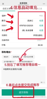 如果检索不到相应图书,需手动填写所有带红标信息,即可正常推荐。