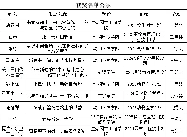 自“我与新疆的故事——书香贺华诞”主题征文大赛启动以来,我们收到了来自全校各学院同学的踊跃投稿。同学们以真挚的情感、细腻的笔触,书写了自己与祖国、与新疆的深厚情缘,字里行间洋溢着对家国的热爱、对时代的思考、对未来的憧憬。