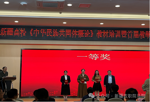 2025 年5月10日,新疆高校《中华民族共同体概论》课程首届教学展示活动在新疆财经大学举办,此次活动由自治区党委教育工委、自治区教育厅、自治区民委、兵团教育局主办,全疆共60所高校参赛,本科组20位选手,高职组40位选手,经过激烈角逐,共角逐出一等奖4人,其中本科组2人,高职组2人,其他奖项若干。我校马克思主义学院塔娜老师代表学校参赛,斩获高职组一等奖!
