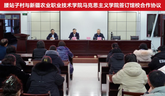 (徐瑞、夏慧芳、夏依丁·亚森)为坚持不懈用习近平新时代中国特色社会主义思想铸魂育人,加快构建“大思政课”工作格局,充分发挥“大思政课”实践教学基地育人功能,12月10日,新疆农业职业技术学院马克思主义学院党总支书记、院长王学利教授带领马院教师代表20余人实地参观、考察新疆奇台县半截沟镇腰站子村乡村振兴高质量发展情况,并与腰站子村签订《馆校合作协议》,共建大思政课实践基地。