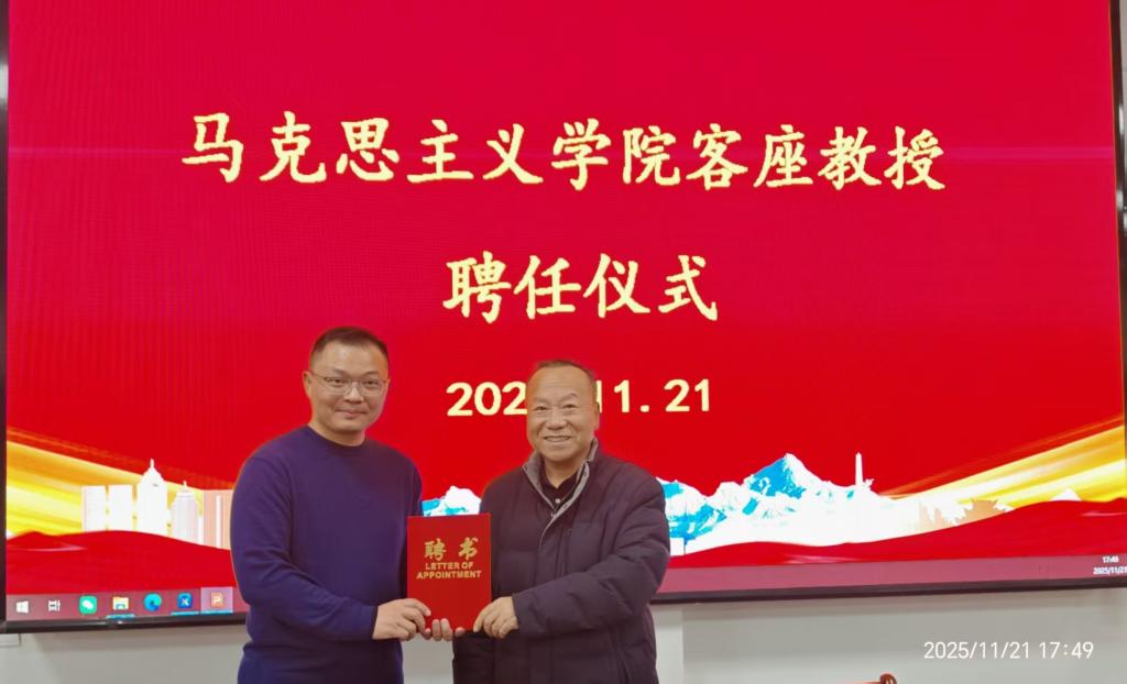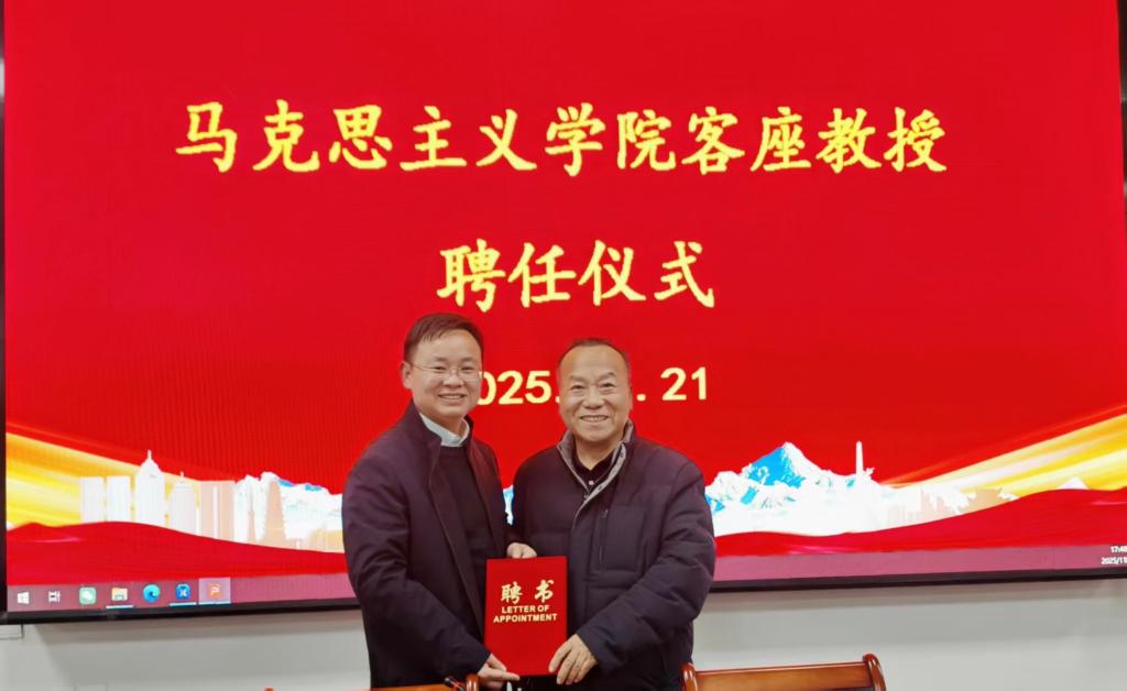 第二阶段,由新疆农业职业技术大学马克思主义学院教授王学利为鲁明川教授、严静峰副教授颁发客座教授聘书。
