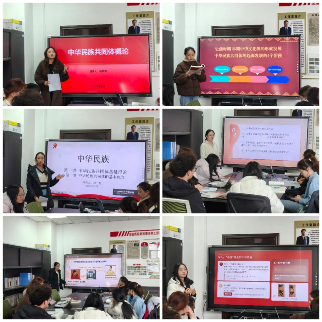 试讲结束后,分课程集体备课。《毛泽东思想和中国特色社会主义理论体系概论》课程组围绕课程章节的逻辑结构、理论重点与实践结合点进行了深入研讨。《习近平新时代中国特色社会主义思想概论》课程组重点就如何将党的创新理论最新成果有机融入课堂教学进行了交流。《中华民族共同体概论》课程组聚焦课程内容的系统性、准确性以及教学案例的选取进行了集体攻关。