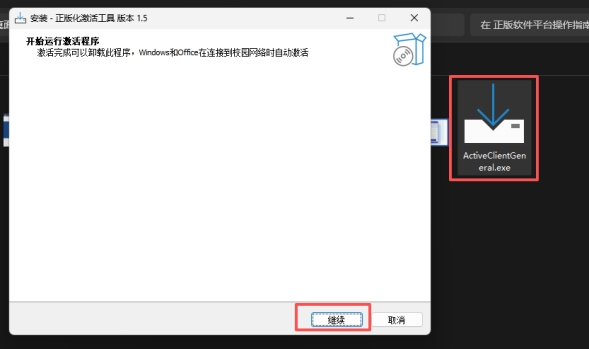 1.根据自身设备的 Windows 系统版本,下载对应的正版软件激活客户端(Win7/8 版或 Win10/11 版)安装;