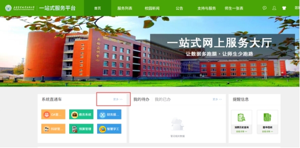 1.打开浏览器,登录学校一站式服务大厅,在页面中找到系统直通车板块;
