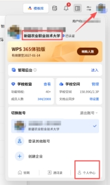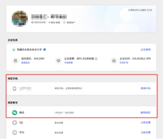 成功登录后,右上角点击对应头像,进入个人中心,可以选择绑定微信或手机号,后续可以使用绑定的登录方式快捷的进入您的新疆农业职业技术大学专属WPS账号。