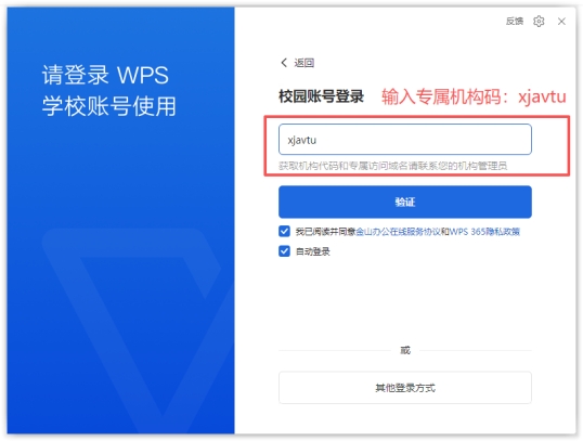 ⭐移动端WPS或协作领取方式: 方式一:打开WPS Office移动端,登录选择其他登录方式,第三方企业,输入“xjavtu“