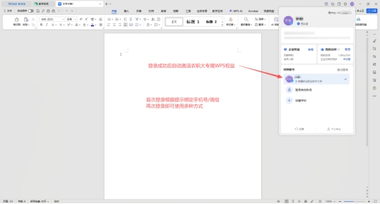 登录后绑定通过绑定自己手机或微信后,可实现绑定方式登录WPS或协作