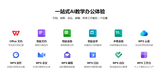 WPS AI、智能文档、智能表格、智能表单、 多维表格、WPS云盘、WPS协作、WPS会议、 WPS邮箱、WPS日历WPS待办、WPS工作台 文档编辑、在线储存、团队协作、 多端使用、资源模板库、PDF阅读编辑、 简历助手、图片工具箱 ………… 各种好用工具 让办公学习更为便捷 |