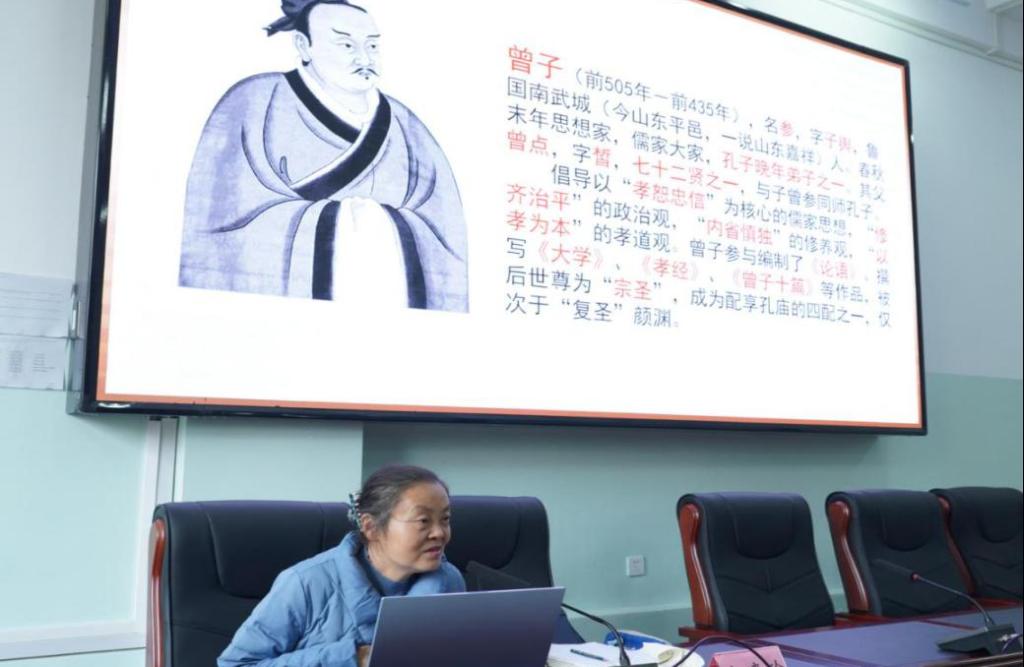 开幕式第二阶段,特邀新疆大学赵素珍副教授做《礼记·大学》谈修身养性专题讲座。