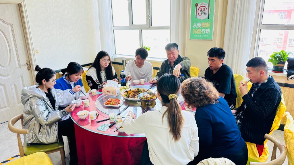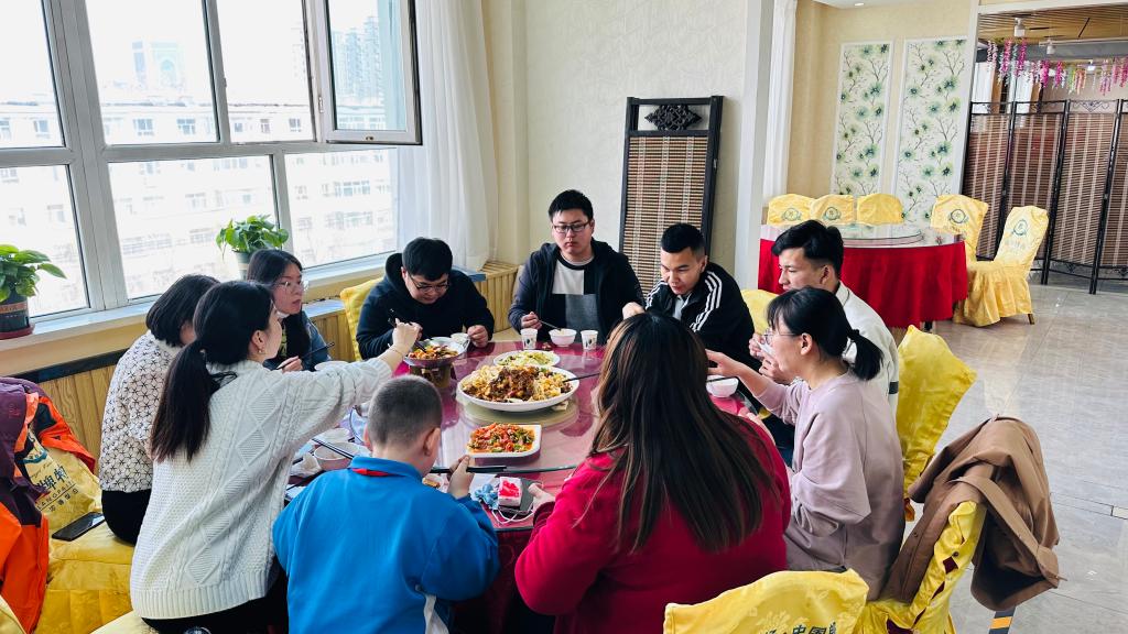 接着邀请联系结对子学生13人进餐厅,在大学生餐厅四楼和共同用餐,细细品尝学生餐厅特色菜品,学生们吃得津津有味,教职工们也觉得饭菜有了家的味道。