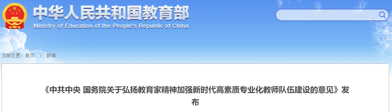 《中共中央 国务院关于弘扬教育家精神加强新时代高素质专业化教师队伍建设的意见》8月26日发布。