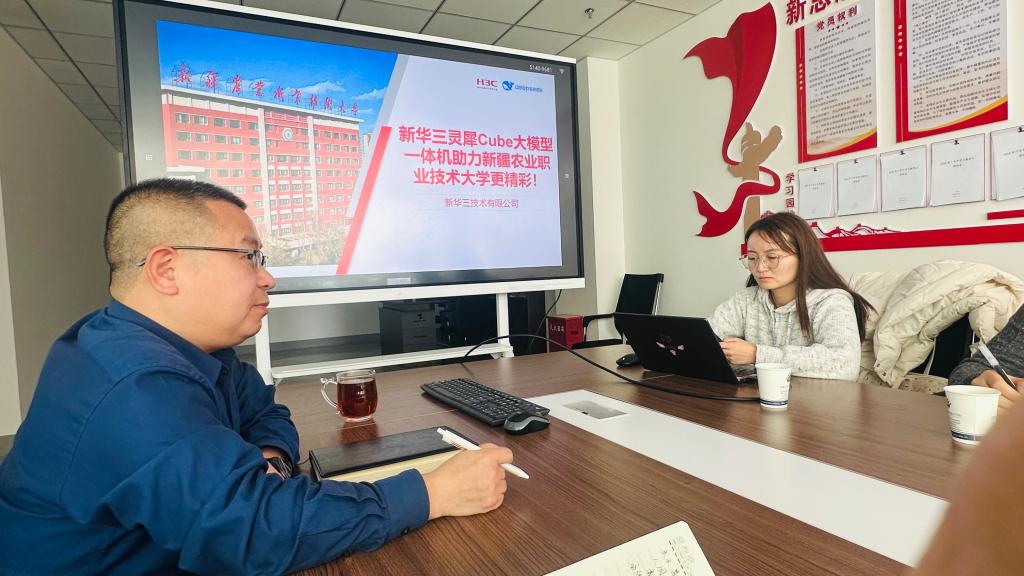 3月5日,在学校网络与信息中心会议室接待企业代表,对新农职大在2月22日已部署的DeepSeek工作进行深度探讨交流。公司代表和网络与信息中心负责人及工作人员参加座谈学习。