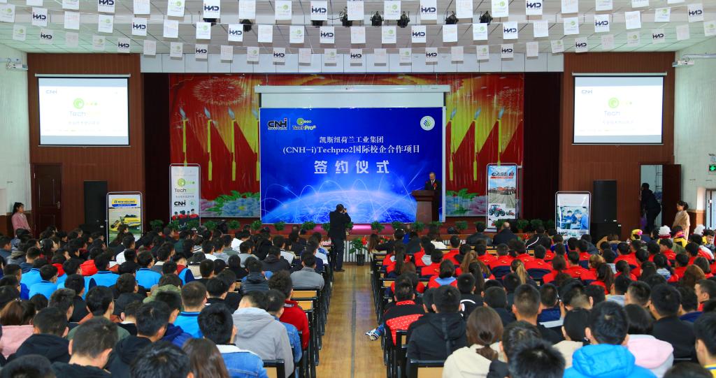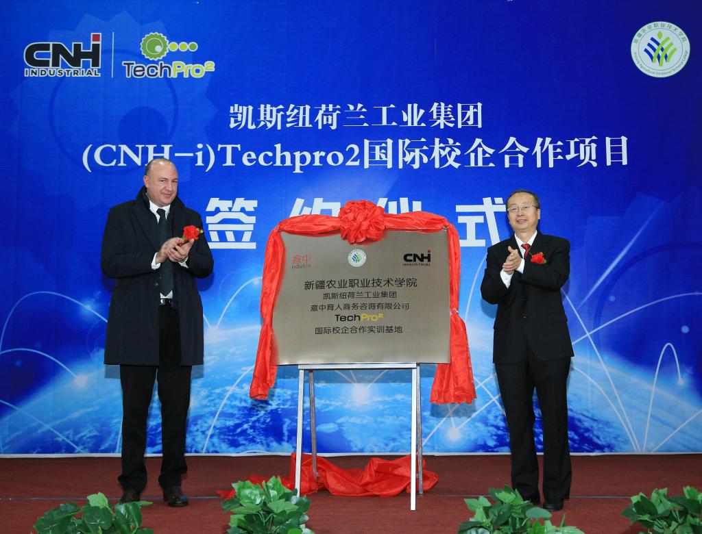 为了更好地服务新疆现代农业机械发展,给新疆大型农业机械领域持续提供具备综合能力的优秀技术人才,进一步提高学院的教育教学水平,提升学生就业竞争力,“新疆农业职业技术学院 凯斯纽荷兰工业集团 意中育人商务咨询有限公司 TechPro2国际校企合作项目”签约仪式于2018年10月18日上午10:30分在新疆农职院屯河校区(新疆昌吉乌伊东路136号)举行。