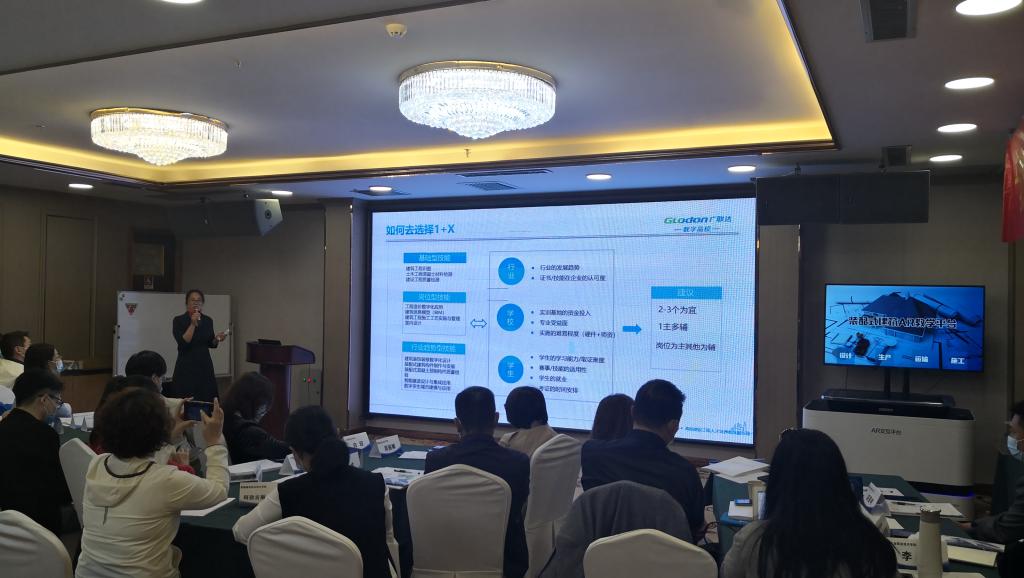 随后,广联达股份有限公司工程产品经理张艳红就职教改革背景下1+X书证融通的内涵及书证融通思路探索进行了讲述与分享。系统分析了高职相关教育政策、行业新型人才需求、1+X证书制度的现状以及1+X书证融通的参考思路。潍坊工程职业学院建筑工程教研室主任韩琪分享了潍坊工程职业学院的1+X实践经验。