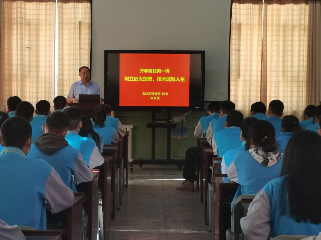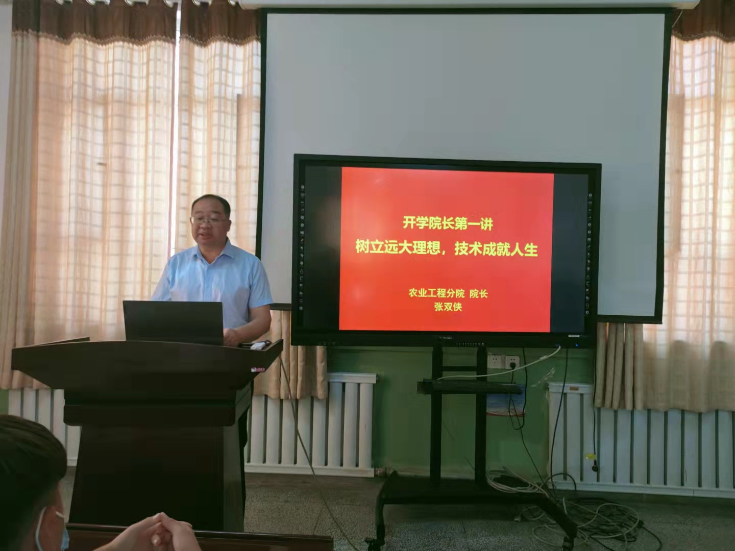 9月15日上午,农业工程分院院长张双侠在2021农业装备应用技术班, 通过互联网直播为2021级全体学生讲授开学第一课,主题为《树立远大理想 技术成就人生》。