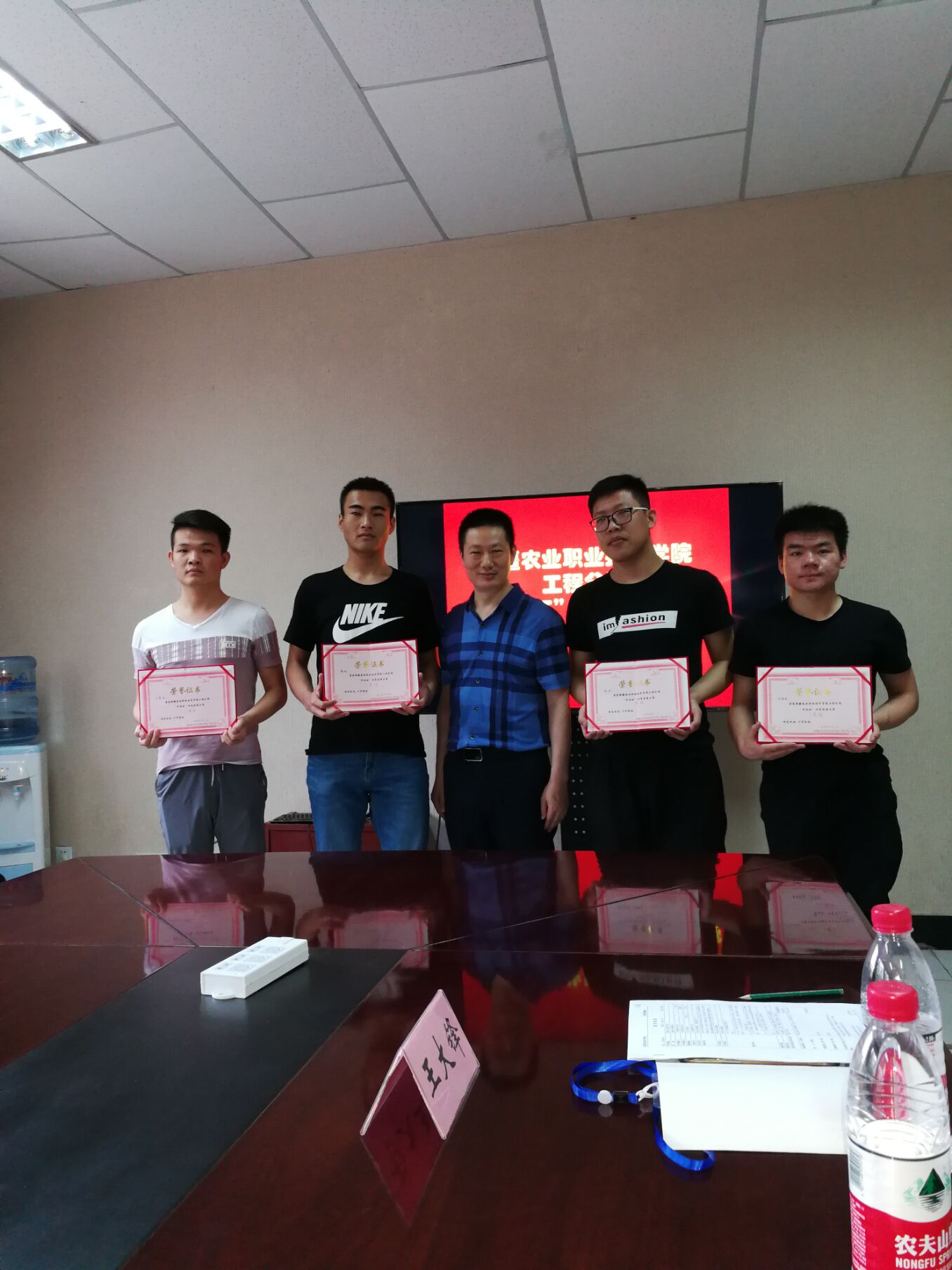 张双侠宣布大赛正式开始。赛事以紧锣密鼓地形式分组进行,在两个多小时的比拼下,参赛选手充分展示了自己精湛的技术,评委们也秉持着公平、公正、公开的原则,使各项赛程顺利完成。最终董继成、梁栋、张阳、陈弈凯四名选手所在小组获得了本次大赛一等奖;祝超奎、李保友、陈英、冯帅帅所在小组获得本次大赛二等奖;陶峻、郭坤、邓维虎、刘富国所在小组获得本次三等奖;黄立强等同学获得优秀奖;于安根、马旭俊获得优秀裁判奖。工程学院院长张双侠、上海华测导航技术有限公司经理唐伟、建筑教研室主任安昶分别为获奖选手和裁判颁发证书。