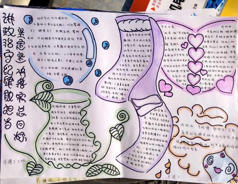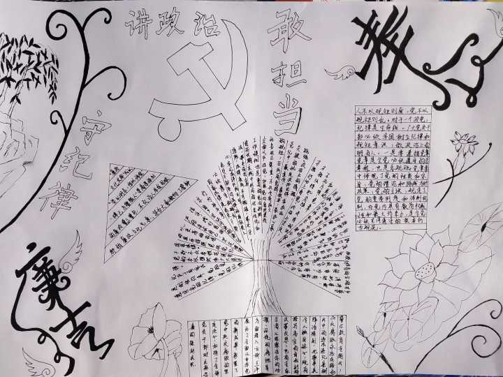 学生们通过手抄报、漫画等艺术手法宣传廉洁思想,敬廉崇洁,人人知诚信,人人讲诚信。