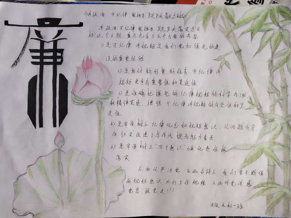 让廉洁文化走进校园,让廉洁精神不再是茫茫的幻想,飘渺而遥远,用自律和行动证明一切,让廉洁的花朵展示的绚丽多姿!