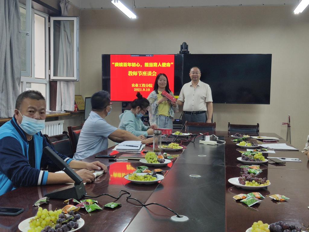 9月10日下午,农业工程分院工会在永清楼一楼会议室举办“庚续百年初心,担当育人使命”为主题的教师节庆祝活动,活动由农业工程分院工会主席杨晓军主持。
