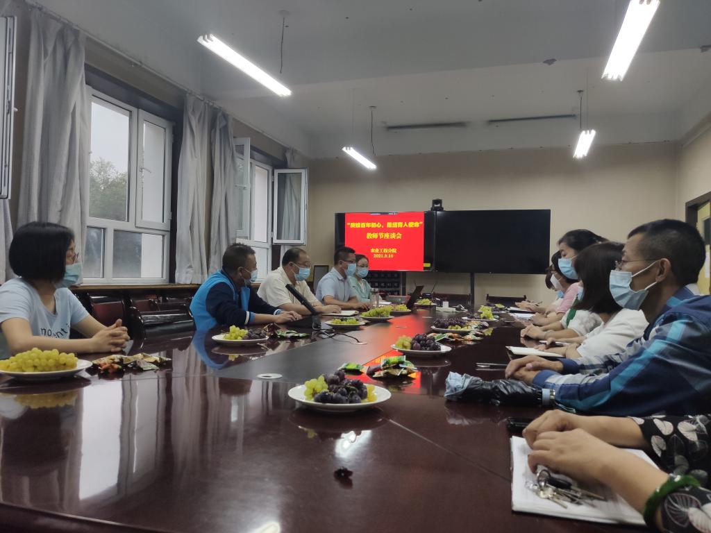 最后,为进一步激发广大教职工教书育人的责任感、使命感和自觉性,与党史学习教育、师德专题教育有机结合进行了教师座谈会,激励广大教职工守教育报国初心、担筑梦育人使命,时刻牢记自己作为教育工作的匠人精神,切实将教育初心落到实处。