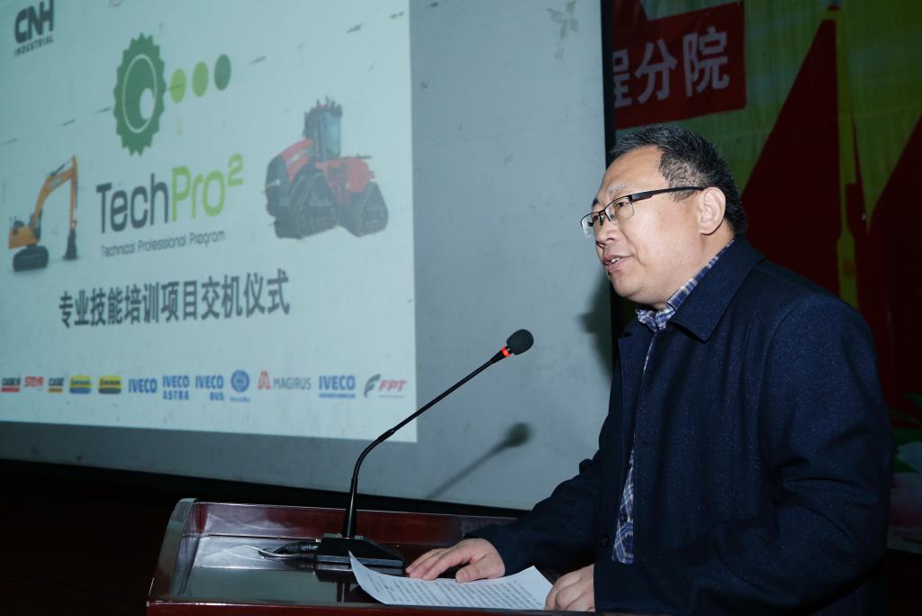 张双侠代表工程分院对项目作了介绍,他对自治区农机局、凯斯纽荷兰工业集团、意中育人及学院对Techpro2项目的大力支持表示深深的感谢,同时也提出了项目运行过程中遇到的实际困难和各种挑战,表示分院一定会竭尽所能,保证项目圆满成功。