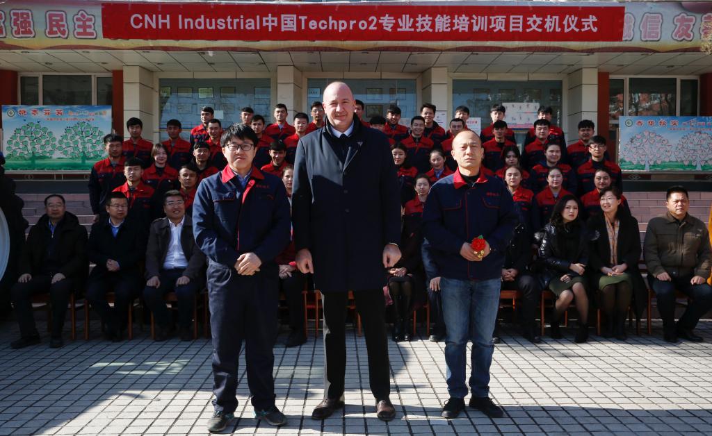 2019年3月20日,交机仪式在新疆农职院屯河校区如期举行。参加此次仪式的领导和嘉宾有:自治区农牧业机械管理局党组成员、副局长姑丽娜尔·吾布力,CNH Industrial中国区总裁Luca MAINARDI ,新疆农业职业技术学院党委委员、副院长王山虎,意中育人主席&CEO Carlo Socol(苏国怡),CNH Industrial中国区商业总经理李康,CNH Industrial中国西北区总经理邱红梅,CNH Industrial 中国人力资源经理张颖,CNH Industrial 中国现场支持经理杨大伟,新疆天农农机股份有限公司人力资源总监盛紫薇,新疆吉峰天信国际贸易有限公司陈龙林,新疆农业职业技术学院农业工程分院党委书记郑建军,新疆农业职业技术学院农业工程分院院长张双侠及2018CNH班全体学生。