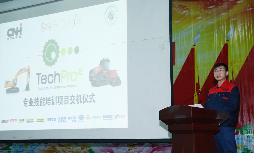 最后,2018CNH班班长扬程代表学生发言,他用自己学习的真实感受,向领导和嘉宾汇报了上学期的学习成果和体会,并向自治区农机局,凯斯纽荷兰工业集团,意中教育咨询公司和学院为此项目所做的一切表示深深的感谢!