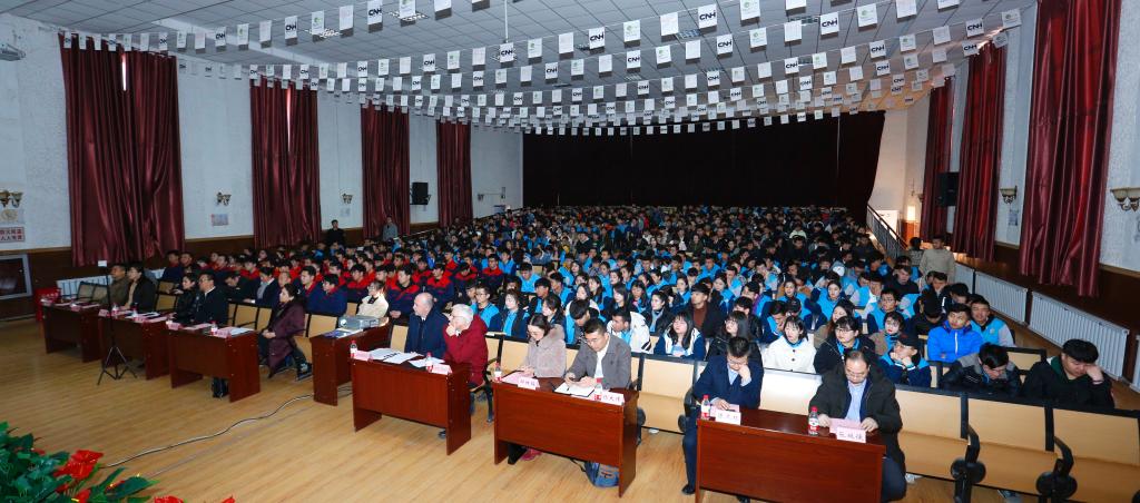 此次交机仪式分为交机仪式和座谈会两部分,第一部分在大礼堂举行,由学院的杨清玲老师和意中的岳巍主持。王山虎副院长致欢迎辞,他说:“校企合作是延伸职业教育发展、实现职业教育人才培养模式的有效途径,是企业、学校、学生三方共赢的重要举措,也是职业学校和企业发展的必然选择。”他认为职业院校应该积极推动校企深度合作,在高水平师资队伍培养、高水平实训基地建设方面取得更大的成绩。对于凯斯纽荷兰工业集团慷慨解囊帮助学校增添实训设备,他表示深深的感谢,并要求Techpro2项目的全体教师和2018CNH班的全体学生,砥砺前行,不怕苦不怕累,学到真本领,为新疆经济发展,为新疆农业现代化的实现,为新疆大型农业机械的广泛使用做出自己的贡献。