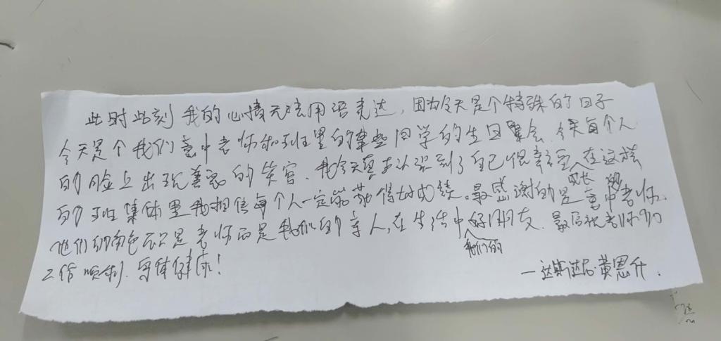 寿星马玉涛抽到了这个任务,他郑重地来到班主任面前,由衷地说:“谢谢班主任对我们的关心、包容和全身心的付出,近一年来,感谢您像母亲一样无时无刻的陪伴和照顾。”孩子们,听到你们的这段话,班主任觉得,再苦再累,也值了。