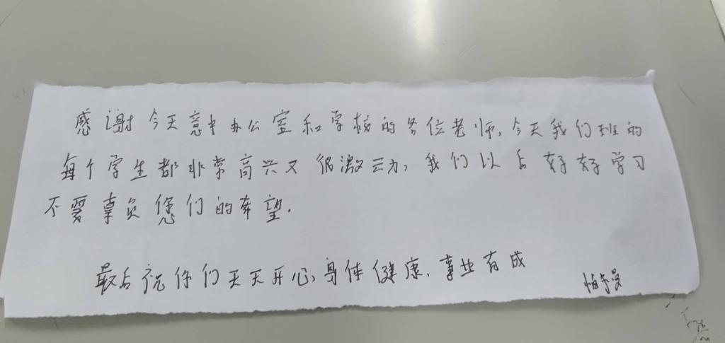 活动接近尾声,班主任杨清玲老师作总结。她问:“同学们今天开心吗?”“开心!”大家异口同声地回答。她告诉大家,希望同学们永远记住这美好的时刻,感恩学院,感恩意中,感恩凯斯纽荷兰,感恩老师和同学们,有了他们,才使得我们班如此幸运,能够享受到国际化的教学资源,同时将这份感恩,转化为日常学习的动力,为以后美好的前程,好好学习,奋力拼搏!