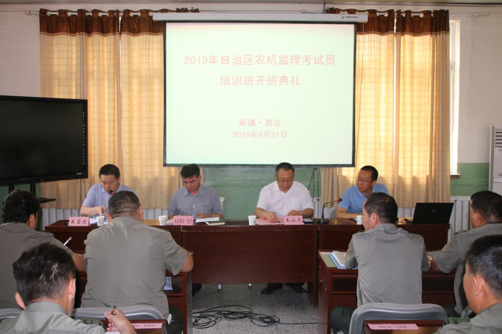 秋高气爽,在这怡人的金秋时节,2019年自治区农机监理考试员培训班在新疆农业职业技术学院屯河校区如期举行。8月31日上午10:30分,开班典礼在二楼会议室召开,出席此次开班典礼的领导有:自治区农牧业机械管理局党组副书记、局长木合塔尔·艾沙同志、新疆农业职业技术学院党委委员、副院长王山虎同志、自治区农机质量监管站站长农机安全监理总站负责人朱堂忠同志、自治区农机安全监理总站副调研员孙岩。典礼由朱堂忠主持。他简单介绍了举办此次培训班的背景和意义。