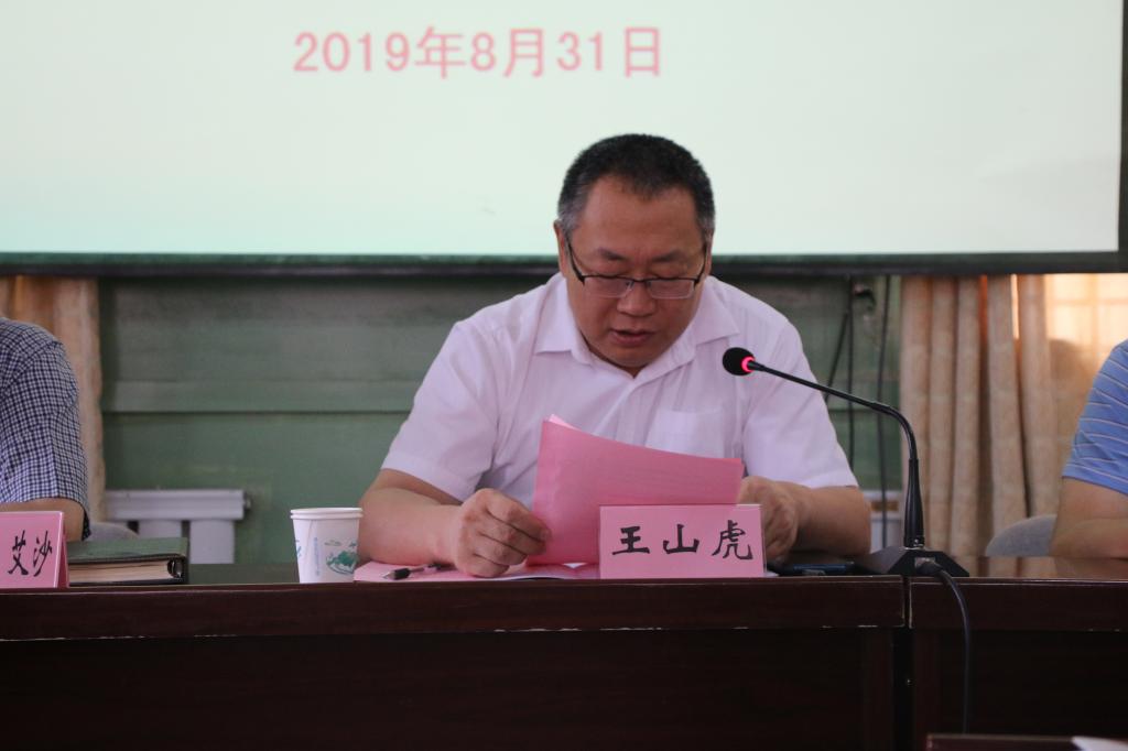 王山虎致欢迎词。他对农机局领导及全疆各地学员的到来表示热烈的欢迎。接着介绍了新疆农业职业技术学院的办学历程,说明我院创办于1958年,已经有60年的办学历史,是全国首批、新疆首所示范性高职院校,全国高职高专人才培养工作水平评估优秀高校,全国高校实践育人创新创业50强高校,获得“黄炎培优秀学校奖”、全国职业院校实习管理50强、教学管理50强、学生管理50强、全国职业院校就业竞争力示范院校。多年来,我院一直坚持产教融合,校企合作,先后成立了“新疆农业机械化学院”、“天业节水农业工程学院”等校企共建学院,采用先进的教学理念,为社会培育了数以万计的各级各类人才。此次农机局把这个培训班交给我院,既是对我们的信任,也是对我院培训水平的一个检验。我们一定提高服务水平,全力做好此次培训工作。