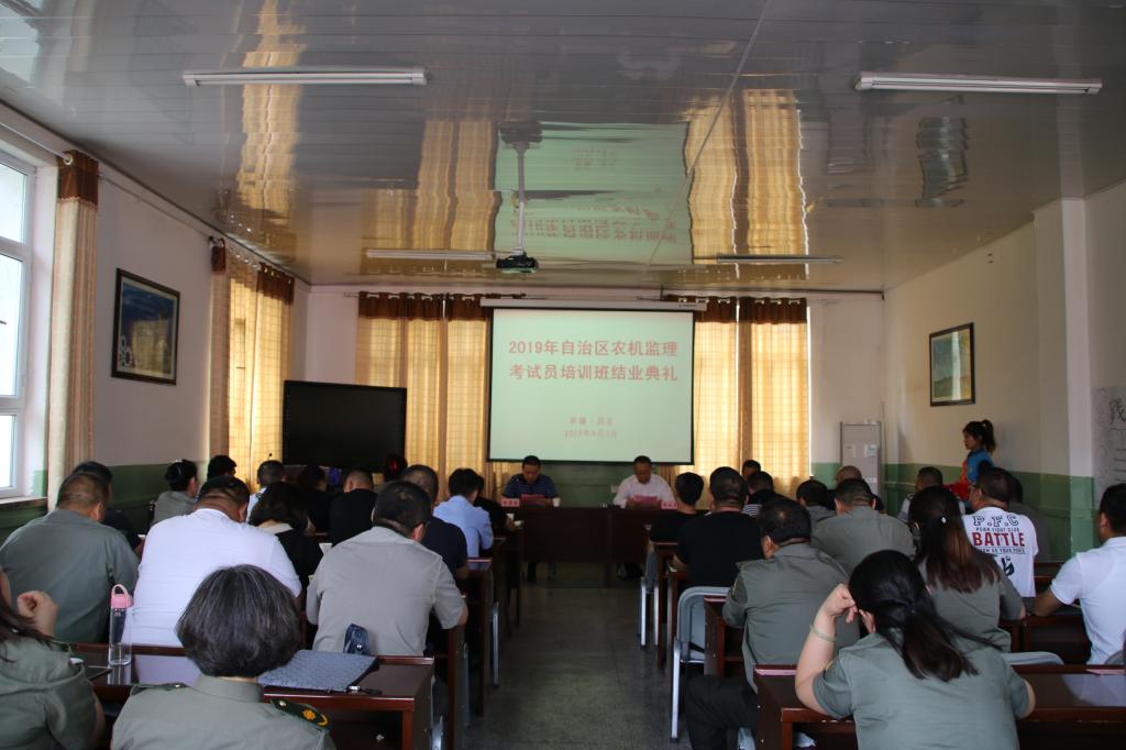 经过紧张充实的5天学习实践,2019年自治区农机监理考试员培训班圆满结束。9月3日上午13:00,培训班结业典礼在新疆农业职业技术学院农业工程分院举行。参加此次典礼的领导有:新疆农业职业技术学院党委委员、副院长王山虎同志、自治区农机质量监管站站长、农机安全监理总站负责人朱堂忠同志、自治区农机安全监理总站副调研员孙岩同志。
