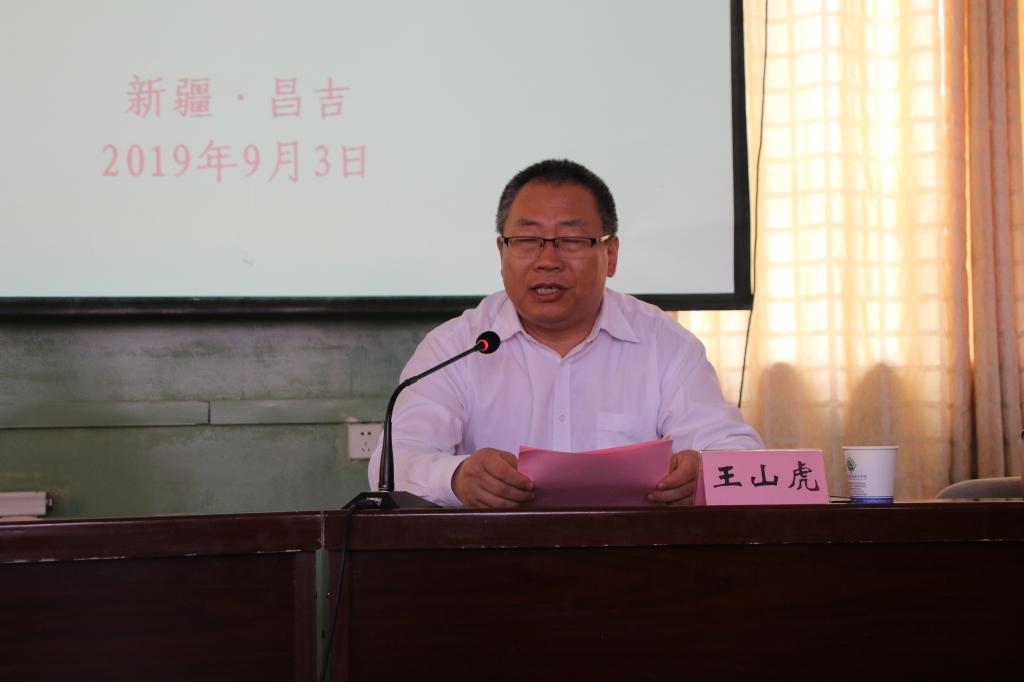 王山虎讲话。他说:“此次农机监理考试员培训班的办理,是自治区农机局对习近平总书记脱贫攻坚工作的具体落实,是‘不忘初心,牢记使命’主题教育活动的切实践行。”希望各位学员经过培训学习之后,谨记自治区农机局的嘱托,切实肩负起农机监理考试员的使命,返回到自己的工作岗位上,用自己的所学,服务当地百姓,为新疆的农机事业发展,为新疆的脱贫攻坚做出应有的贡献,服务新疆工作总目标。