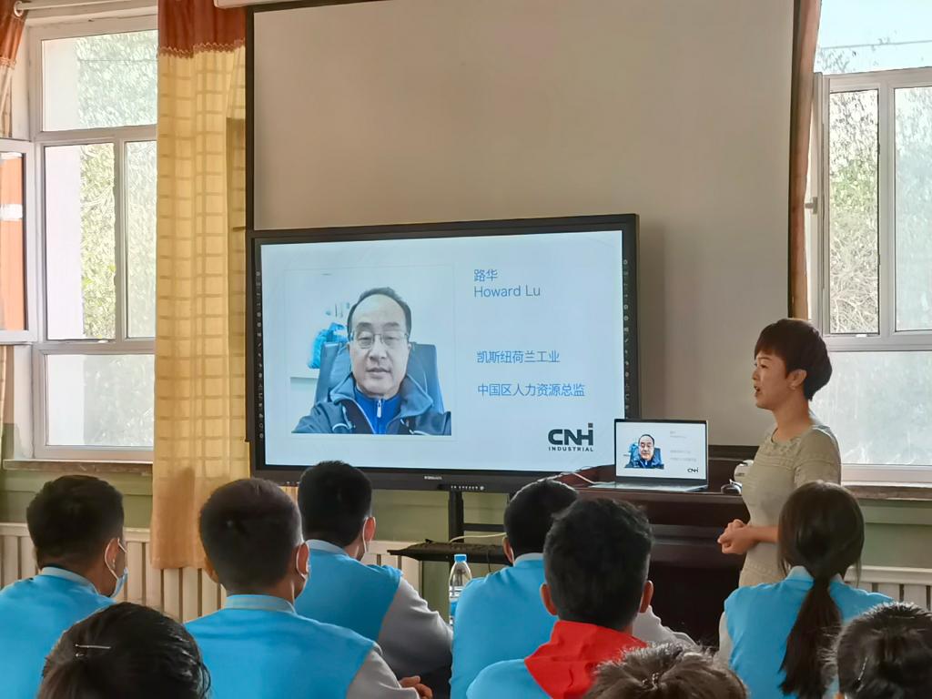 金秋九月,值此丰收季节,新疆农业职业技术学院TECHPRO²国际校企合作项目2021级新生网络见面会在屯河校区图书馆二楼会议室如期举行。参加此次见面会的有:凯斯纽荷兰工业集团中国区人力资源总监路华,中国区人力资源经理潘欣欣,浙江意中智能科技有限公司董事长兼总经理、国际职业教育专家Carlo Socol,副总经理程琦,商业发展总监岳巍,心理咨询师兼培训师、督导师潘惠娟,新疆项目主管兼高级农机培训师唐成,高级农机培训师刘志明,班主任杨清玲及2021农业装备应用技术班全体学生65名。