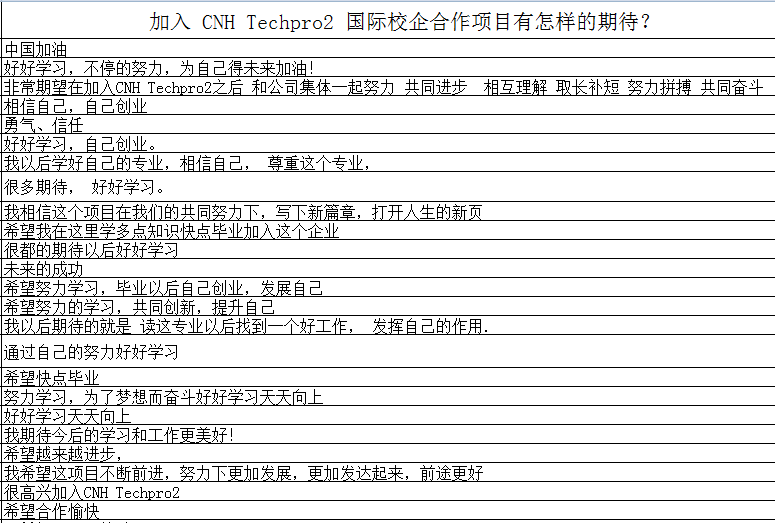 杨清玲老师做总结。她说:“学院,凯斯,意中,为大家搭建起了一个国际化校企合作项目的高起点平台,每位同学如何在舞台上精彩地表演,就要看大家的具体表现了。”她希望同学们珍惜这难得的机会,奋发图强,不断锤炼,尽快成长为高级蓝领、大国工匠,为中华民族伟大复兴贡献自己的力量!