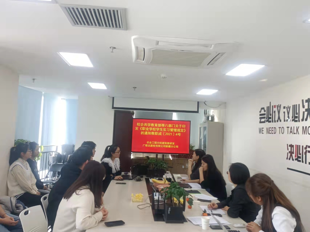 2022年3月6日下午,新疆农业职业技术学院农业工程分院建筑教研室教师王苗、邢红梅、张晓炜一行三人赴广联达股份有限公司新疆分公司参加2019级工程造价技术专业校企合作学徒制班跟岗实习汇报交流会。公司市场推广部、销售部、学习发展部领导及工作人员参加了本次交流会。