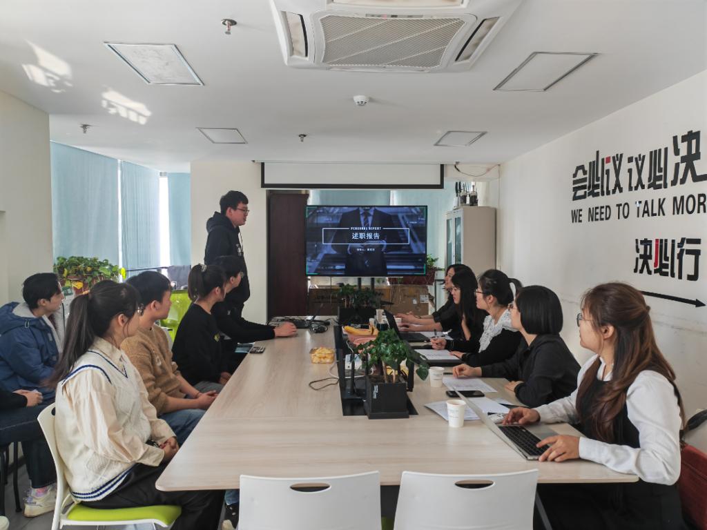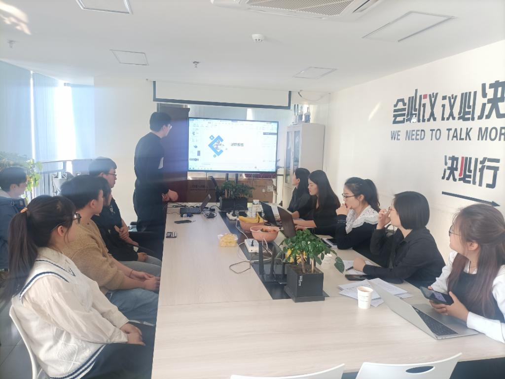 梁战同学介绍了其日常工作,包括:与客户电话沟通,上门送单并解决客户问题,广联达文化和造价类视频,协助地市销售,线下活动协助,参与企业文化2.0探讨工作等。他在叙述中详细介绍了每一项工作处理过程中遇到的问题和解决方式,归纳总结能力较强,并在后续的汇报中明确提出了自己下一个阶段的实习需求。