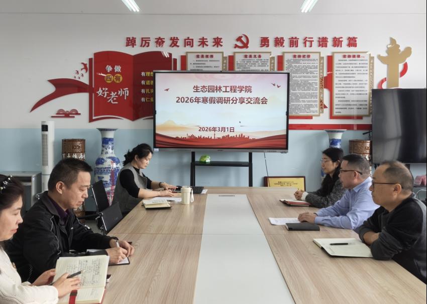 生态园林工程学院召开2026年寒假调研分享交流会 根据学院安排,在寒假期间,学院领导班子及中层干部选定1-2个问题,结合寒假实践锻炼、访企拓岗、外出培训等工作开展调研,谋划“十五五”开局之年的工作。2026年3月1日下午,学院召开2026年寒假调研分享交流会...[详细]