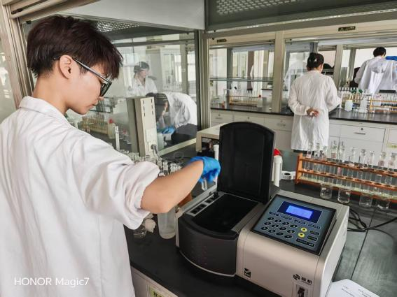 为保障赛事质量,学院组建专业教学团队,深入解构检测标准与行业规范,将核心技能要点拆解融入日常课程体系,实现"课赛融通"。赛前通过专项辅导、多轮模拟实操训练,帮助学生吃透操作细节;赛中,学子们严守规范,在分光光度计校准、标准曲线绘制、数据精准计算等环节展现扎实功底,此次赛事既检验了教学成效,更让学生在竞技中强化行业认知。