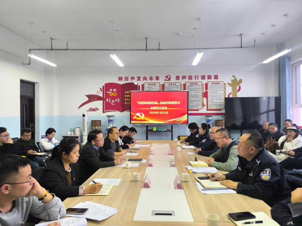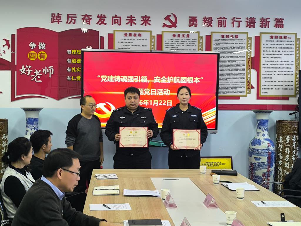 为深入贯彻落实总体国家安全观,强化党建引领作用,推动校园安全治理提质增效,1月22日下午,生态园林工程学院党委、保卫处党总支与校园派出所党支部创新联动机制,联合开展“党建铸魂强引领,安全护航固根本”主题党日活动。各部门领导班子成员、党员代表及教职工齐聚一堂,通过“1+5+x”活动,凝聚起维护校园安全稳定的强大共识与行动合力。