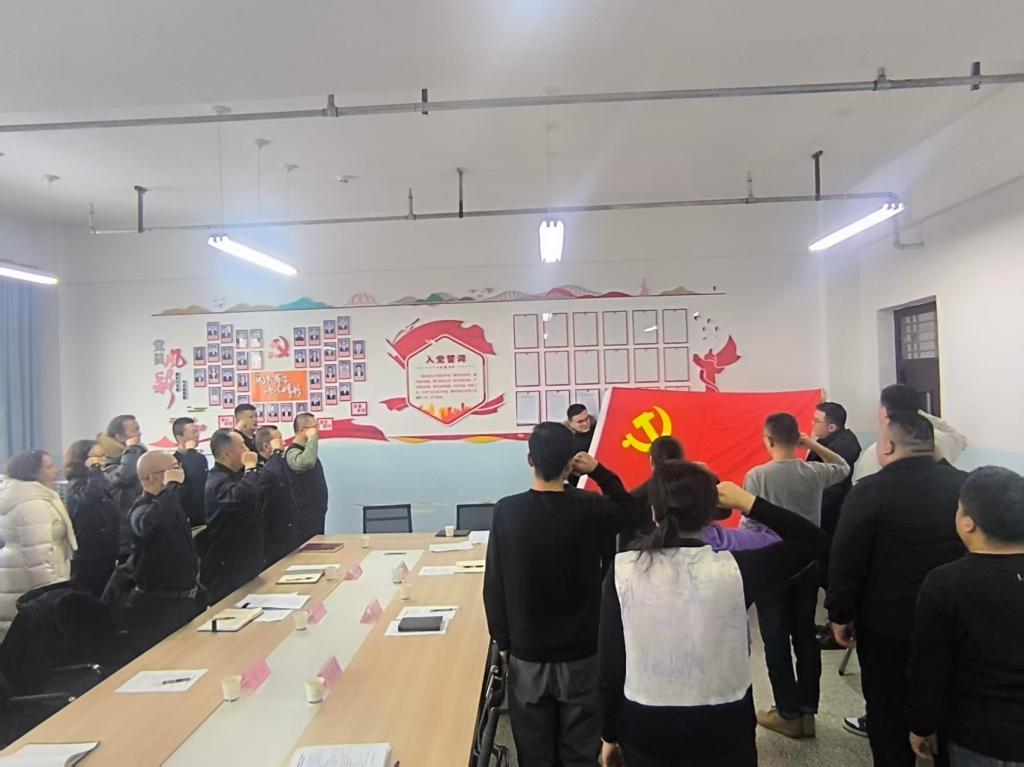在庄严肃穆的氛围中,全体党员在庄道坤同志的领誓下,面对党旗重温入党誓词。铿锵有力的誓言彰显了全体党员不忘初心、牢记使命,坚决守护校园安全的坚定决心。