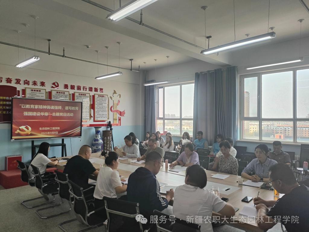 9月7日,生态园林工程学院开展"以教育家精神铸魂强师,谱写教育强国建设华章"主题党日活动。活动在学院1708会议室和东泉校区活动室同步开展,“银龄”计划、退休教师代表、兼职教授代表,全体教师,学生党员、入党积极分子代表共同参与,营造了尊师重教、薪火相传的浓厚氛围。