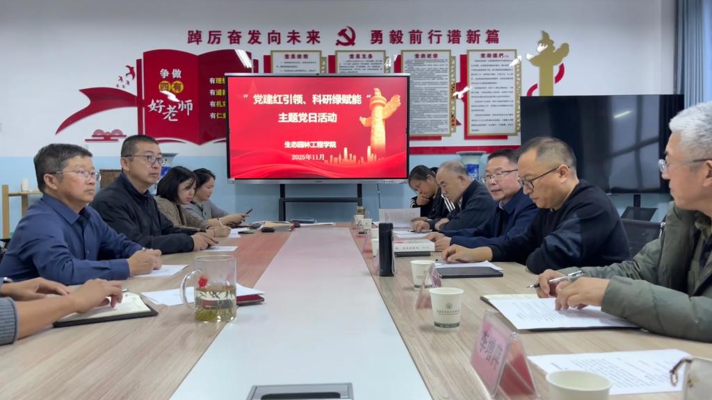 为深入贯彻新时代党的建设总要求,破解党建与科研“两张皮”难题,助力2026年科技计划项目申报落地,11月27日下午,生态园林工程学院以“党建红引领、科研绿赋能”为主题,开展主题党日活动。学院全体教师、“银龄计划”教师、特邀组织员共同参与此次活动。